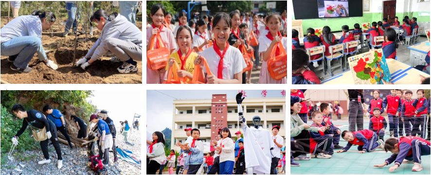 沉浸式公益体验:发动员工志愿者走访青海、广西、云南、甘肃等地区乡村学校,与学生互动,并开展助学支教、物资捐赠、学生家访和学校调研活动,感受公益力量,践行社会责任。