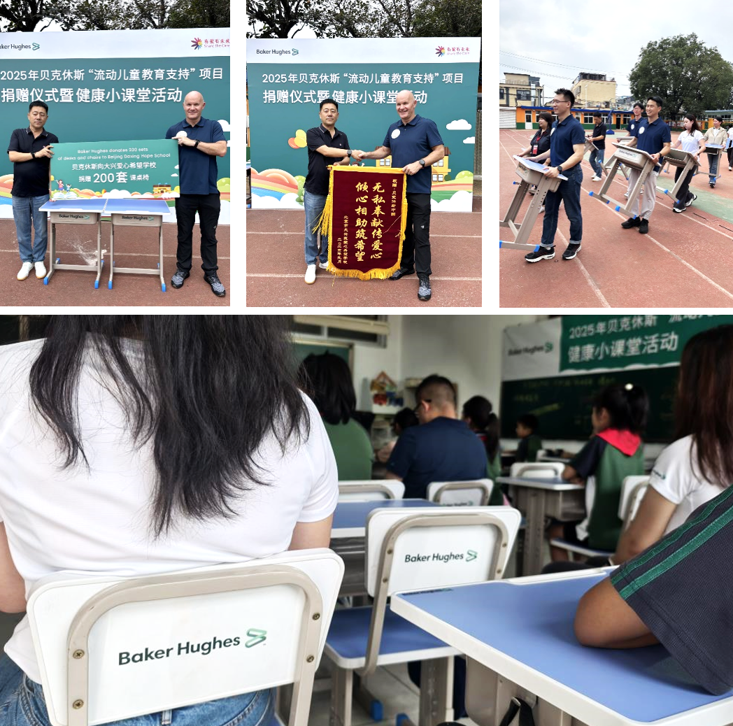 2022-2025年,贝克休斯联合有爱有未来,持续为打工子弟学校捐赠1,500 本图书、4.3万余件卫生防疫用品、200余套课桌椅,以及其它教学物品若干;同时为学校援建现代化卫生间、粉刷教室,改善流动儿童学习环境。