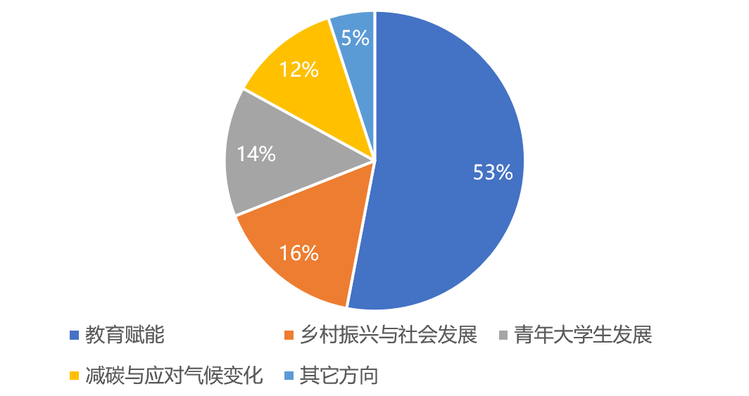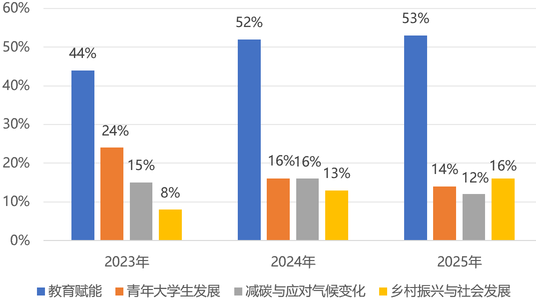 2023-2025年,教育项目占比从44%显著提升至到53%,乡村振兴与社会发展项目则实现了大幅增长,由8%提升至16%。
